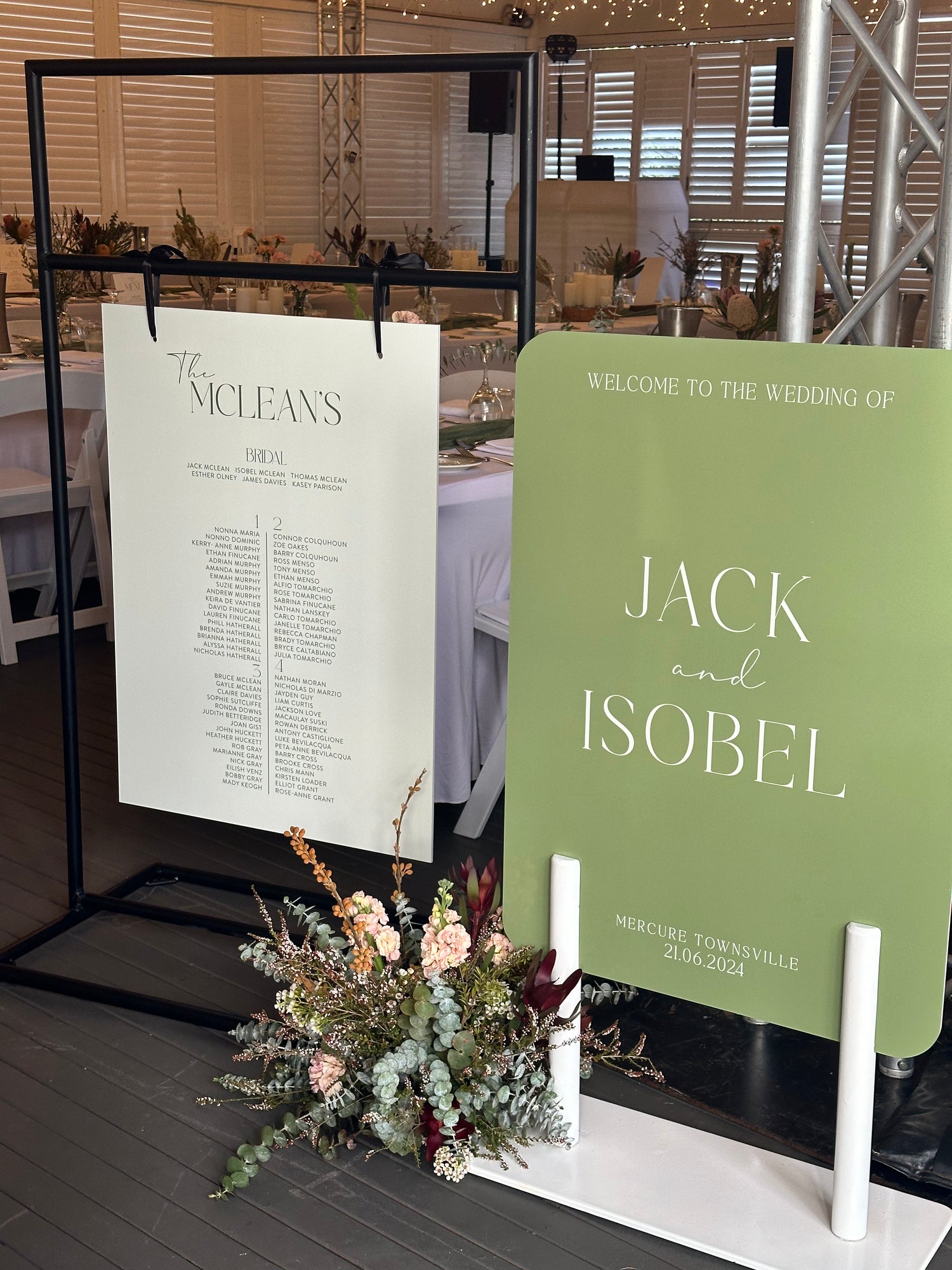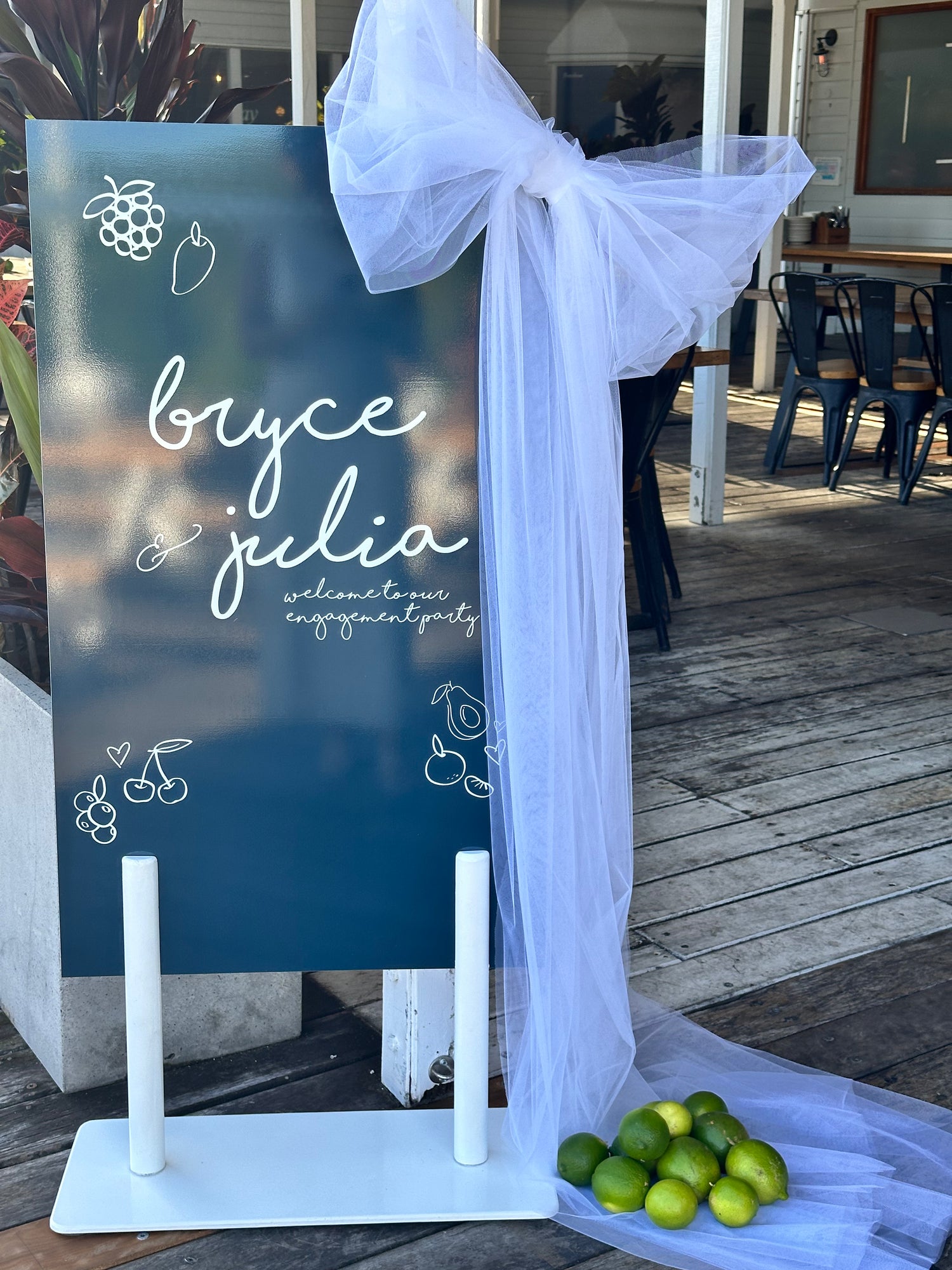 Book either a 2 or 3 sign combo for your special event. These free standing signs come in all different shapes and can be customised to suit your event style.